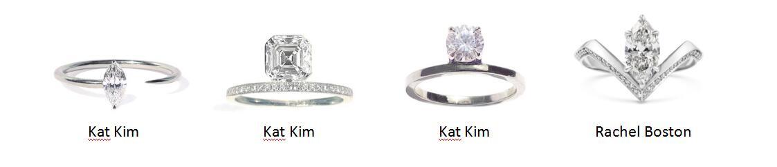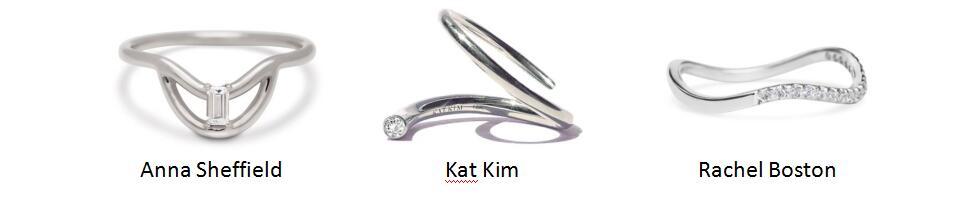 光滑的金属成为设计焦点,其表面无杂而华丽,更优胜于宝石。光圈指环退为次选,抢眼极简的单主石戒重回流行首选之位。更具独特的通用性、原材形状的戒指,可作出更多个性的新娘套装组合和配对。活跃的线条设计让戒指形态大胆抢眼并具有试验性,分叉双戒环配衬县浮宝石镶嵌,勾勒出新颖的轮廓。细节减少更强调简洁,但可以加入闪亮的材质,即使只佩戴单圈指环也足够丰富。重金属感让设计更为立体,极少化但精致的表面是低调奢华的标志。