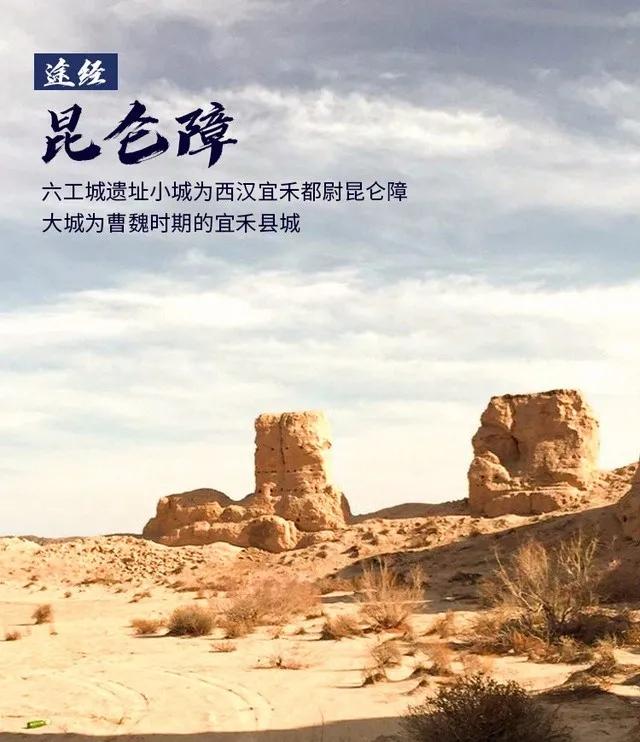 六工古城,汉为昆仑障,该城址遗址分布面积大、结构复杂,沿用时间长,对河西史地研究具有十分重要的意义。1993年被公布为省级文物保护单位。如今残垣断壁,依然屹立不倒,多年的风化,只可见依稀的轮廓。
