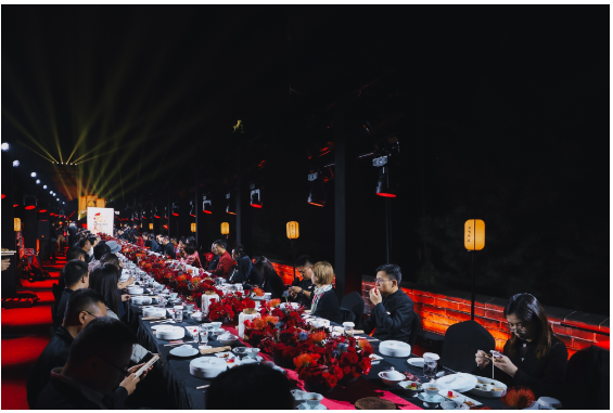 夜幕降临,居庸关长城灯火通明,长桌蜿蜒如龙,近百位嘉宾共赴“中华土鸡长城夜宴”。“中华土鸡长城夜宴”以二十四节气为灵感,由五家土鸡龙头企业精选全国优质品种,打造出二十四道独具时令风味的土鸡菜品,每道菜品不仅呼应节气特征,更在烹饪手法上融合现代创意与传统技艺。